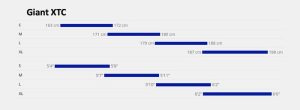 جدول اندازه دوچرخه GIANT XTC SLR 2 2025